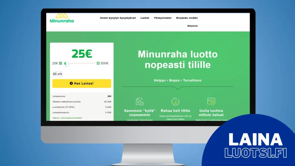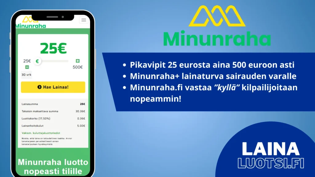 - Minunraha tarjoaa lainaa 25 – 500 euron välillä.
