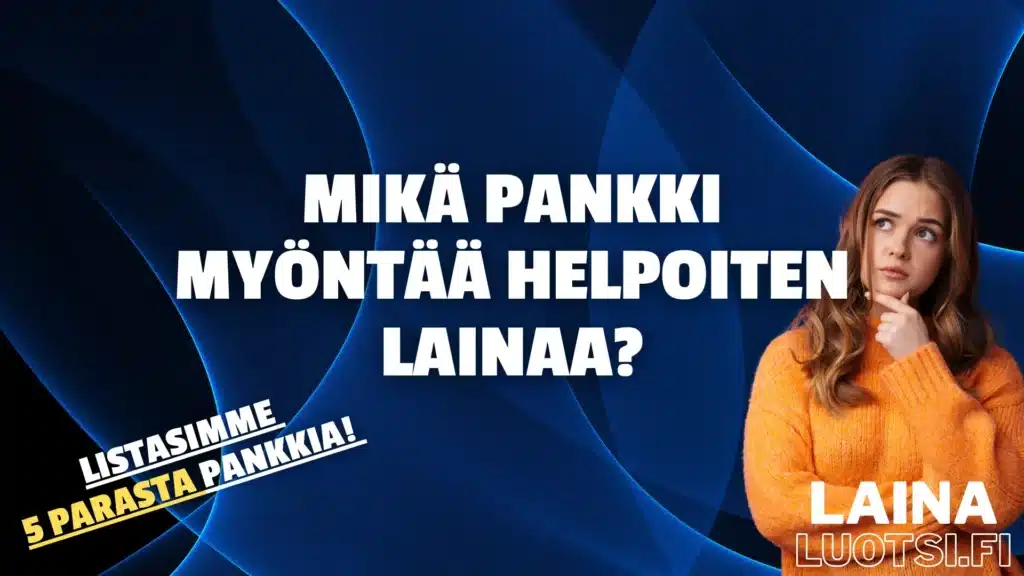 Mikä pankki myöntää helpoiten lainaa on meidän tämän päivän aiheena. Yksikään pankki ei myönnä varmasti lainaa, mutta lainapalveluiden joukosta muutama nimi nousee esille – silloin lainaa voi hakea pienillä tuloilla ja heti 18 vuoden iässä.