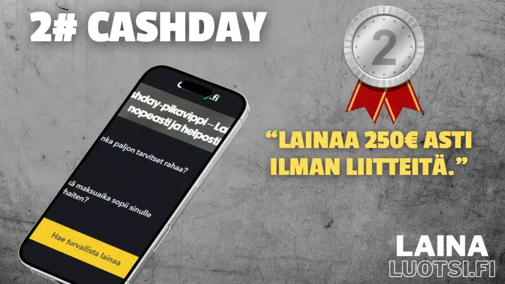Cashday on vastaus mistä helpoiten lainaa -kysymykseen suurimmalle osalle suomalaisista, etenkin kun haetaan pientä alle 100 euron summaa.