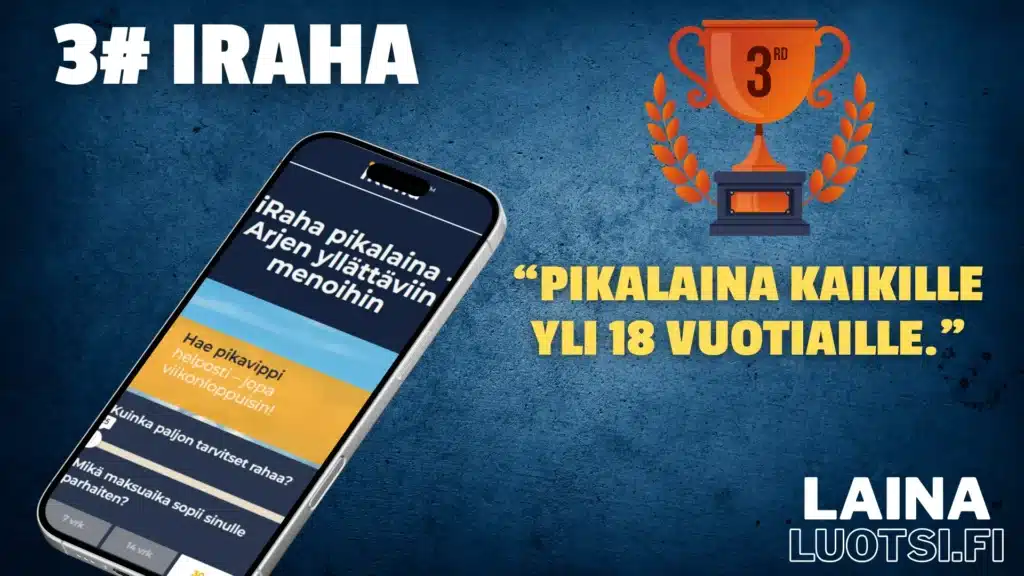 Laina on taloudellinen taakka. Haethan lainaa vain sen verran, kun pystyt maksamaan takaisin. Voimme saada komissiota linkkiemme kautta myönnetyistä lainoista, mutta suosituksemme perustuvat aina Jarnon ja Tuomaksen omakohtaisiin kokemuksiin.
