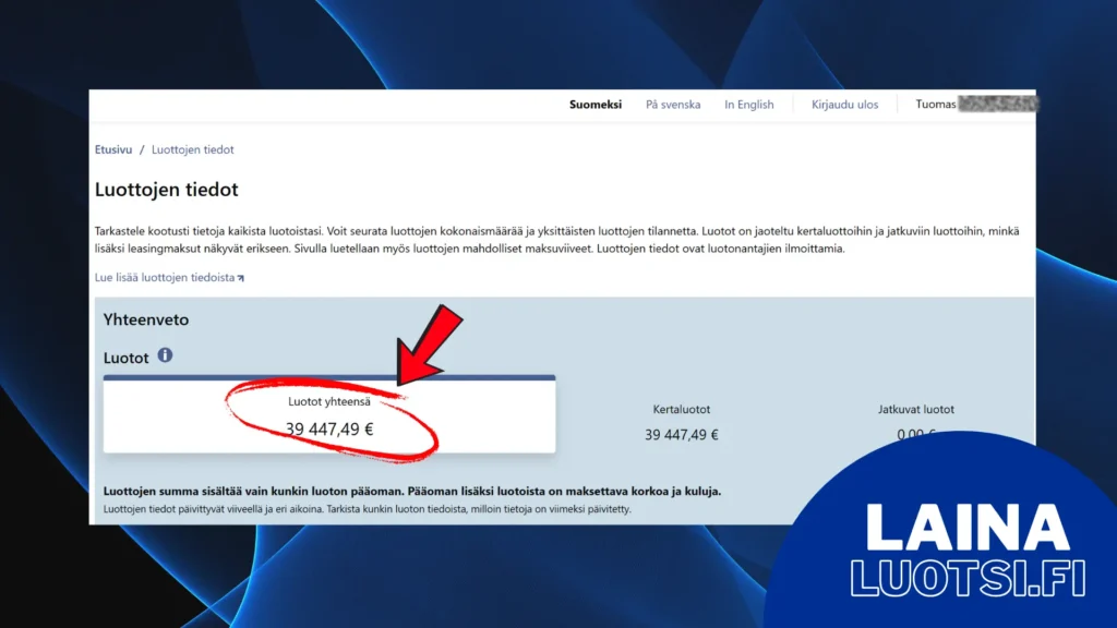 - Tiedot mm. asuntolainoista, kulutusluotoista sekä opintolainoista.